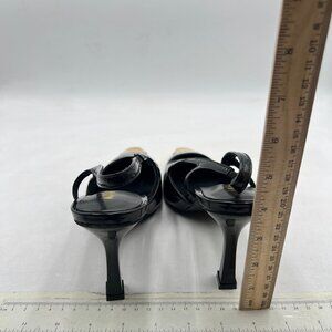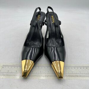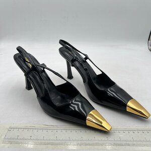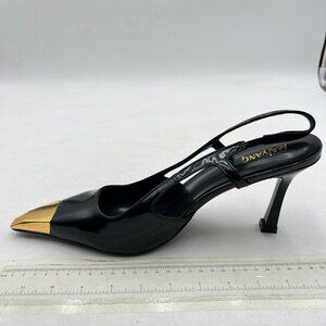 Maiyang Black Square Cap Toe Slingback Pumps Slip on Stiletto High Heel Sandals