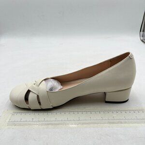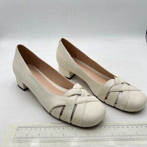 Maiyang Ivory Square Toe Cutout Slip on Pumps Low Chunky Block Heel Classic Comfy Daily Dress Shoes