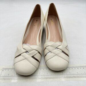 Maiyang Ivory Square Toe Cutout Slip on Pumps Low Chunky Heel Classic Shoes