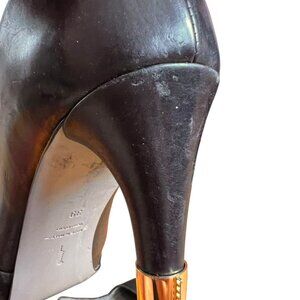 Maiyet Livia platform pumps black leather suede toe semi pointed gold toe 39 9