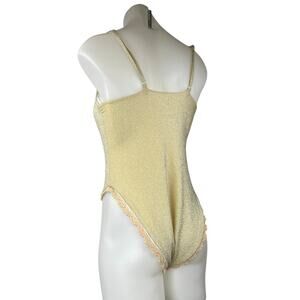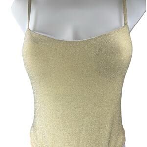Maiyo Cristalina Women's Gold Metallic Sleeveless Cami Tank Bodysuit Top Size M