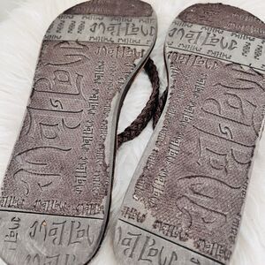 Maj Pole Brown Leather Braided Earthy Boho Slip on Thong Sandals - Size 9