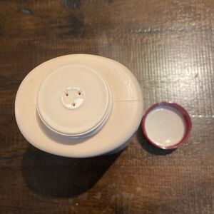 Maja talcum powder in a cream bottle with red accents. 7 oz size.