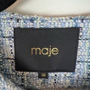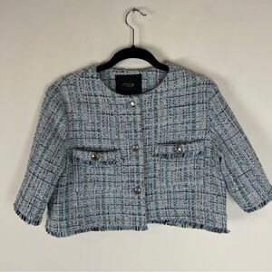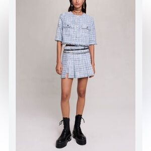 Maje 2 Piece Matching Tweed Short Sleeve Blazer Skort Pleaded Skirt Set Size 38