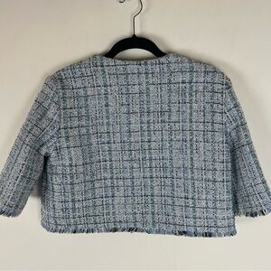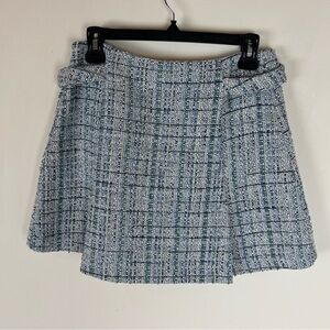 Maje 2 Piece Matching Tweed Short Sleeve Blazer Skort Pleaded Skirt Set blue