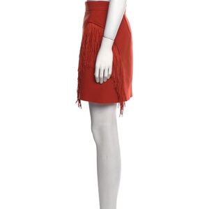 Maje burned orange mini fringe skirt with side zip closure size 38 best fits a 4/6 (please note it was worn a few times inside shows pealing)