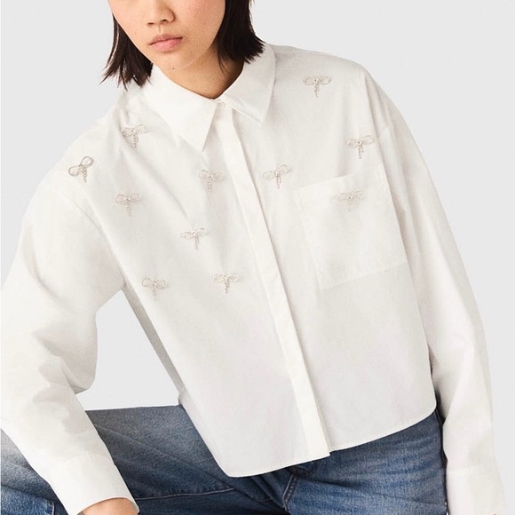 Elegant white shirt with intricate embroidery. Ideal for versatile styling. Byb 3