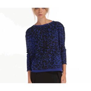 Maje Animal Print Blue and Black Cotton Sweater sz 1 (US Small)