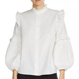 Maje BIANCO Loutan Balloon-Sleeve Poplin shirt with frills