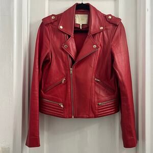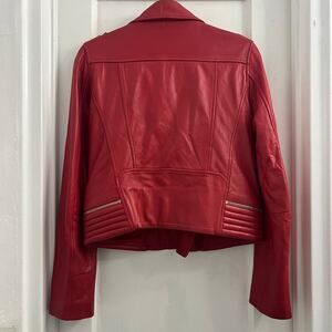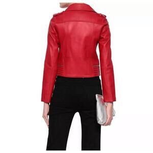 Maje Basalt Moto Biker Cropped Leather Jacket, Red EU 40, US size 6
