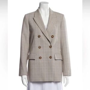 Maje Beige / Light taupe and blue plaid blazer. Double breasted with button closure. No notable flaws. Recently dry cleaned and ready to wear. French size 36, which is a 2-4 US.