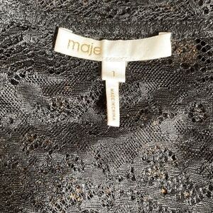 Maje Black Lace Pattern Sheer Crew Neck Top
