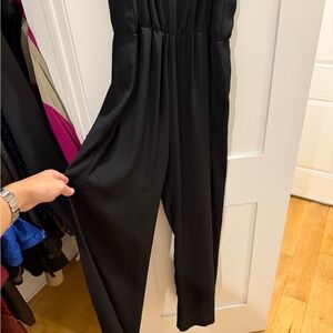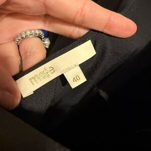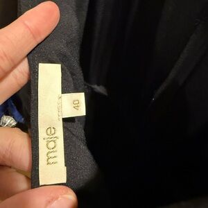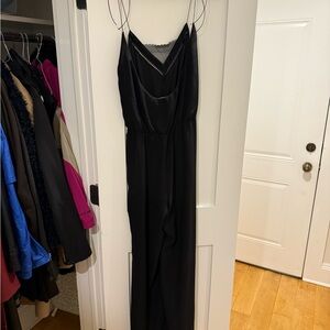 Chic black maxi dress by Maje. Features delicate lace trim. Perfect for elegant occasions.