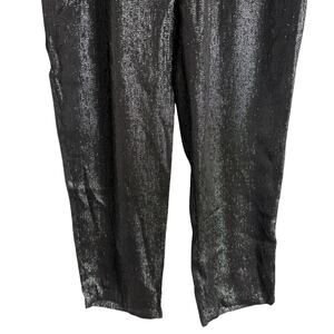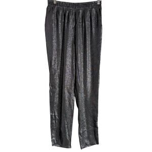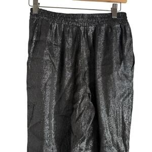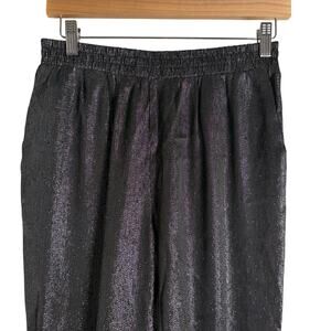 Maje Black Metallic Straight Leg Pull-On Silk Blend Dress Pants Size M