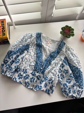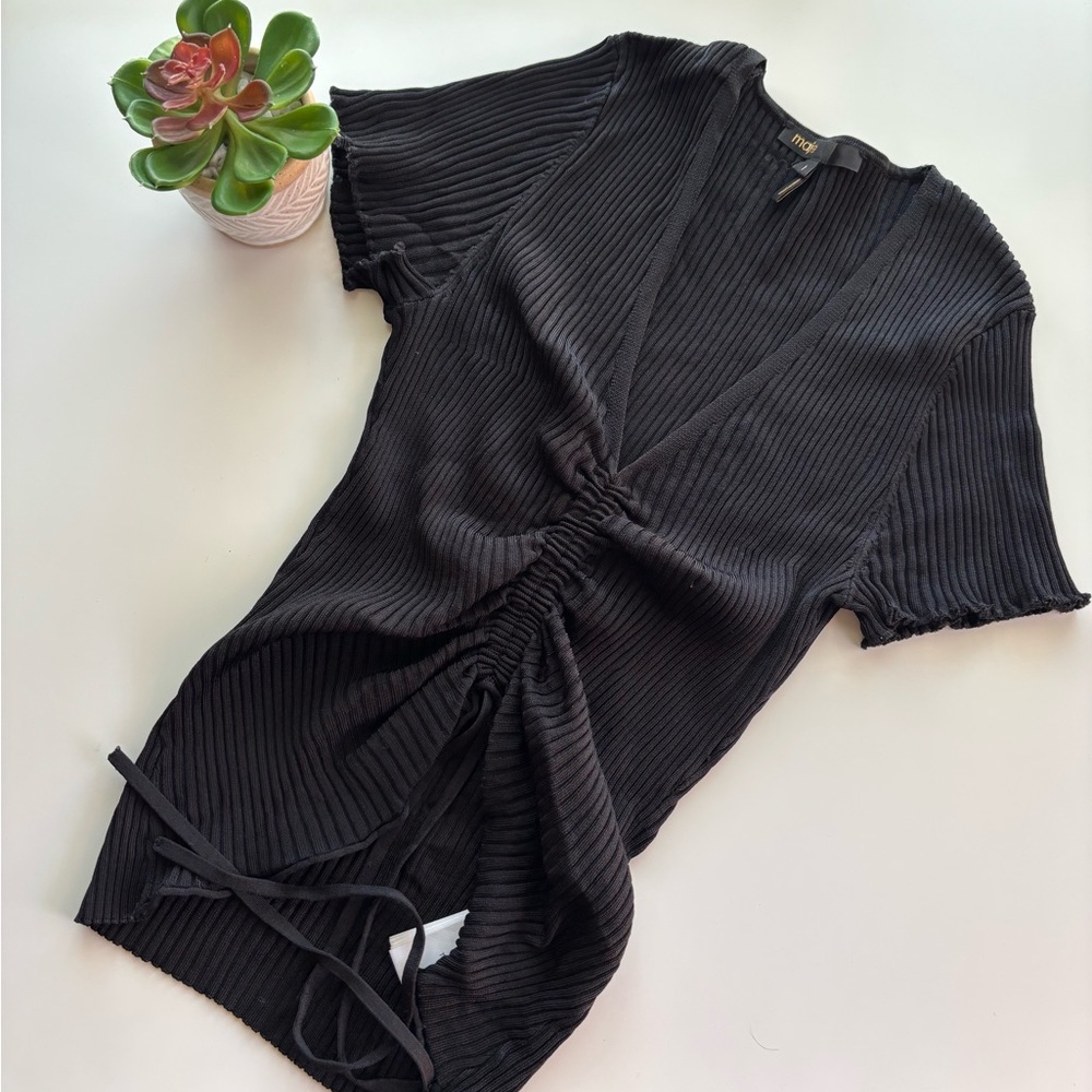 Good used condition. Black ribbed top with drawstring ruching detail. Maje brand. Size 1, which is a small.