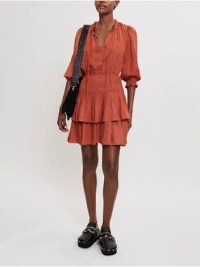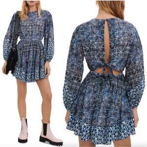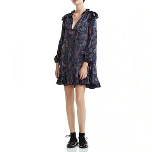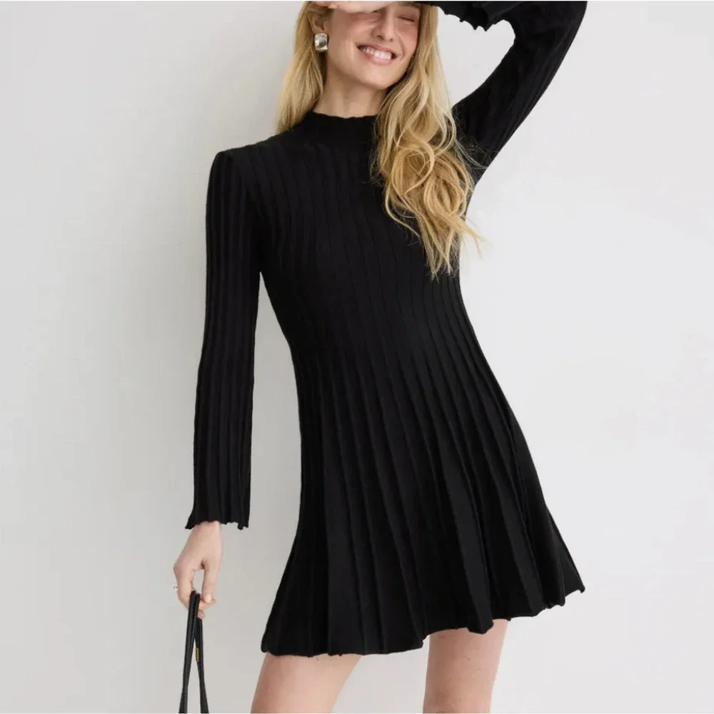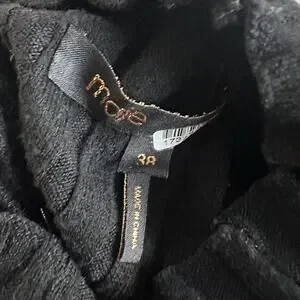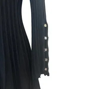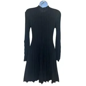 Maje Black Ribbed Knit Mini Dress SMALL Career Fit Flare Long Bell Sleeve $300