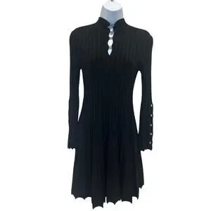 Super soft wool blend ribbed knit fit and flare mini sweater dress, fun mock neck with embellished back and sleeves. I think you can wear it either way with the embelishments in the back or front. Perfect for career, business casual, going out, winter party, date night, party, dinner date, conference, networking event, office career