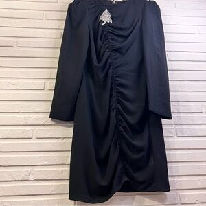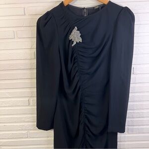 Maje Black Rosami Long Sleeve Jewel Embellished Mini Dress, Women’s Size Large