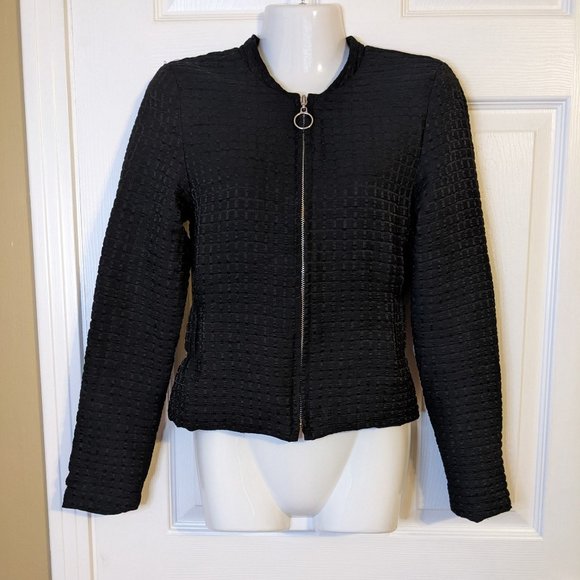 Maje Black Textured Zip Front Long Sleeve Elastic Waist Jacket size S USA/36 EU*