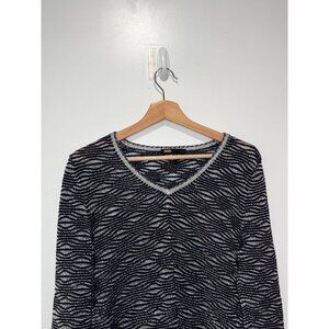 Maje Black & White Wave Pattern V-Neck Pullover Women's Sweater Size 2