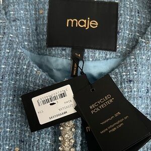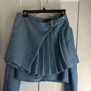 Chic blue mini jacket. Tweed texture. Stylish and elegant. Skirt available in site