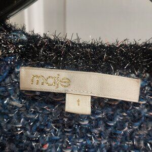 Maje Blue Miso Lurex Sparkle Chain Cardigan
