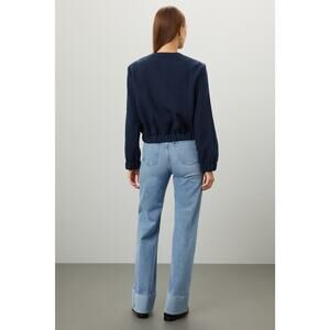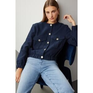 Blue tweed (92% cotton, 8% polyamide). Lining (100% Viscose). Jacket. Long sleeves. Crewneck. Front button closure. 21" from shoulder to hemline. Imported.