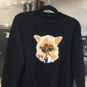 long-sleeved, round-neck sweater for women, cute and fresh sweater with dog, 100% cashmere