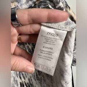 Maje Cheetah Print Linen V Neck T Shirt Small