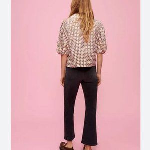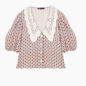 Crafted from lightweight printed linen, Maje’s Cosange blouse features a removable embroidered collar and radiant mother-of-pearl buttons.