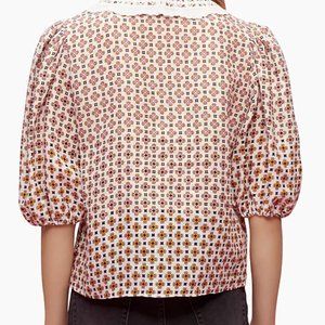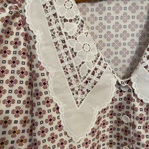 Maje Cosange Guipure Lace-Trimmed Printed Linen Blouse