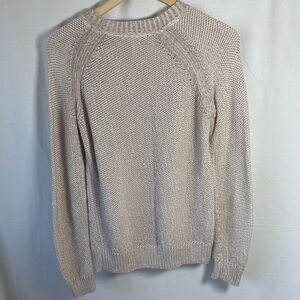 Maje Cream Cable Knit Metallic Thread Crew Neck Sweater Sz S