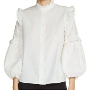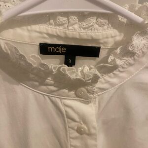 Maje Cream Ruffled Button-Up Blouse