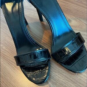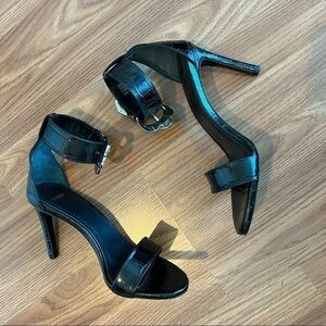 Maje Crocodile Embossed Buckle Heeled Sandals