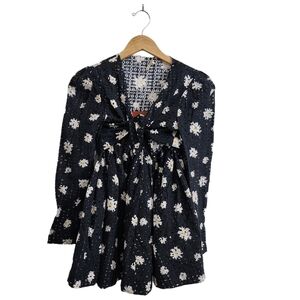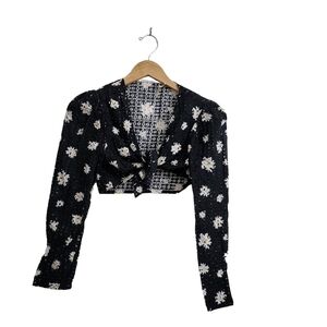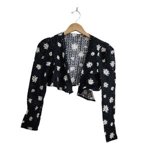 Maje Crop Top & Skirt Set Outfit Size 3 Large Black Daisy Print Boho Beach