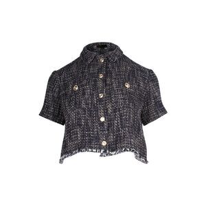 Delivery Duty Paid included – A staple for the new season, this Maje cropped top features a button front, and is set in navy blue cotton tweed. Pair with high waist trousers or skirts for a chic casual look!