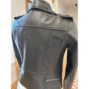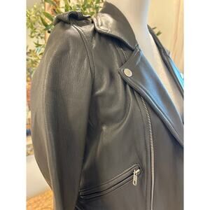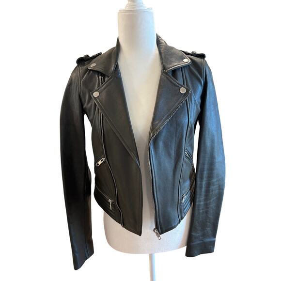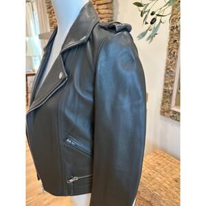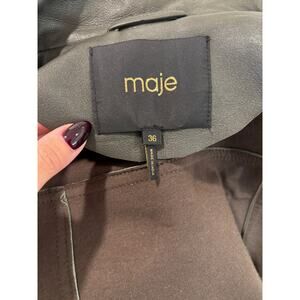 Maje Dark Green Lamb Leather Biker Jacket Size 36 - Small. Please see all photos. In good pre owned condition.