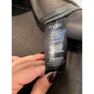 Maje Dark Green Lamb Leather Biker Jacket Size 36 - Small
