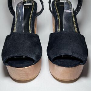 Maje Flash Studded Suede Platform Peep Toe Sandals in Black