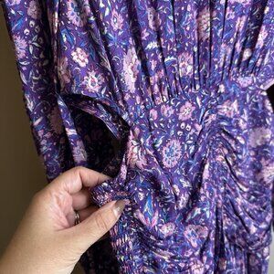 Maje Floral Mini Dress Size 38 UK 10 $445 Purple Georgette Smocked Cut Out Boho