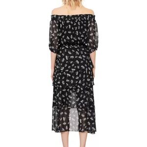 Maje Floral Off Shoulder Hi Low Black White Asymmetrical Midi Dress US M l FR 38
