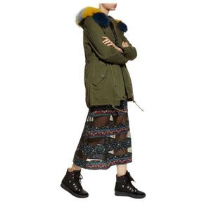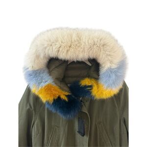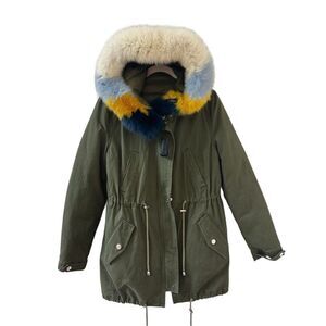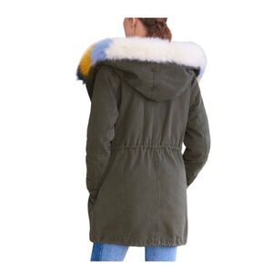 Maje Fox Fur Collar Pockets Cotton Lined Parka Coat Womens Khaki Size
