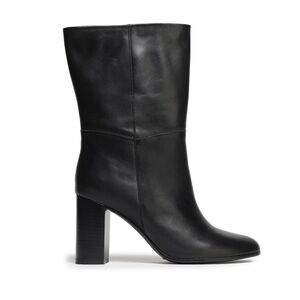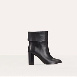 Beautiful and versatile Maje Leather Fold over boots. Ankle boots in smooth leather• 21cm wide mid-height shaft with Stack heel. Almond toe. Soft, supple Leather allows for boot to be folded over for a shorter ankle Bootie.