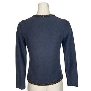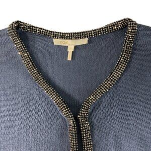 Maje Friday Cardigan Sweater 1 US/S Small Blue Beaded Long Sleeve Linen Blend