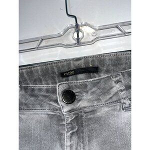 Maje Gray Distressed Skinny Biker Jeans With Zipper Details Size 28