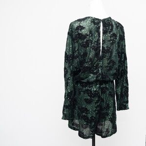 Maje Green Sequin Romper — Size: French 40 (US Large per Maje), Color: Green and Black Sequins. Brand new with tags, never worn, and in pristine condition. Note: Does not include the belt shown in the manufacturer’s photo.