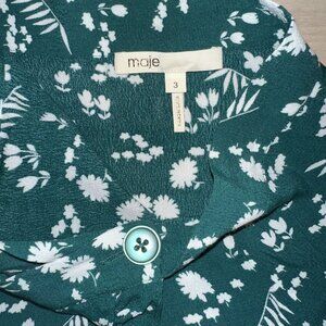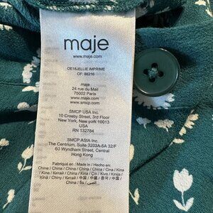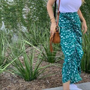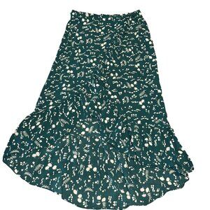 Maje Green White Floral Print Ruffle Midi Skirt Women's 3 Large L