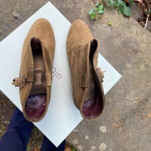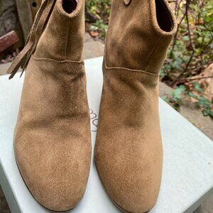 The perfect dress it up or down bootie. These Maje ankle boots were worn only a few times. They are in great condition, with only some slight darkening of the suede along top rim. No stains or cuts to the suede. The soles are only slightly worn. Inside is leather lined and very clean.
