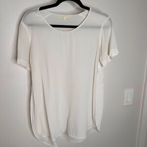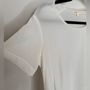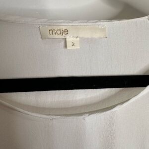 Chic and versatile white tee by Maje. Short sleeves and relaxed fit. Crew neckline. Soft lightweight silk material, slightly sheer. Perfect for any occasion. Formal or casual, this piece goes perfectly with any outfit. Size EU 2 US M. Measurements 19" pit to pit 28" length. Excellent condition