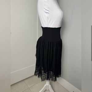 Tags: black skirt, lace trim skirt, pleated skirt, mini skirt, high waist skirt, A-line skirt, flared skirt, dressy skirt, chic skirt, trendy skirt, evening skirt, party outfit